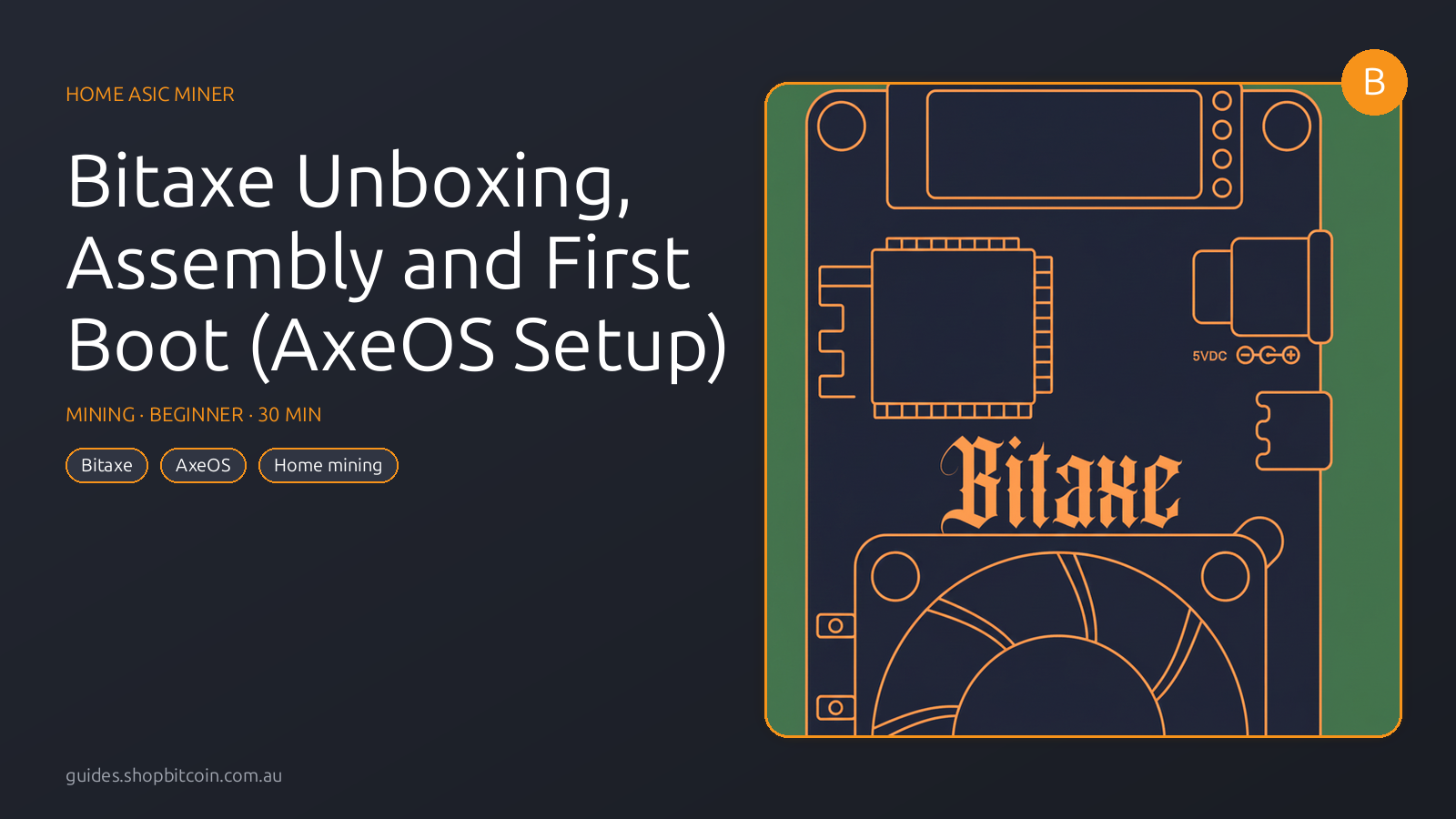 Unbox your Bitaxe, mount the heatsink and fan, connect USB-C power, join your home Wi-Fi through AxeOS's AP mode, and verify your first shares — the complete Aussie setup guide.